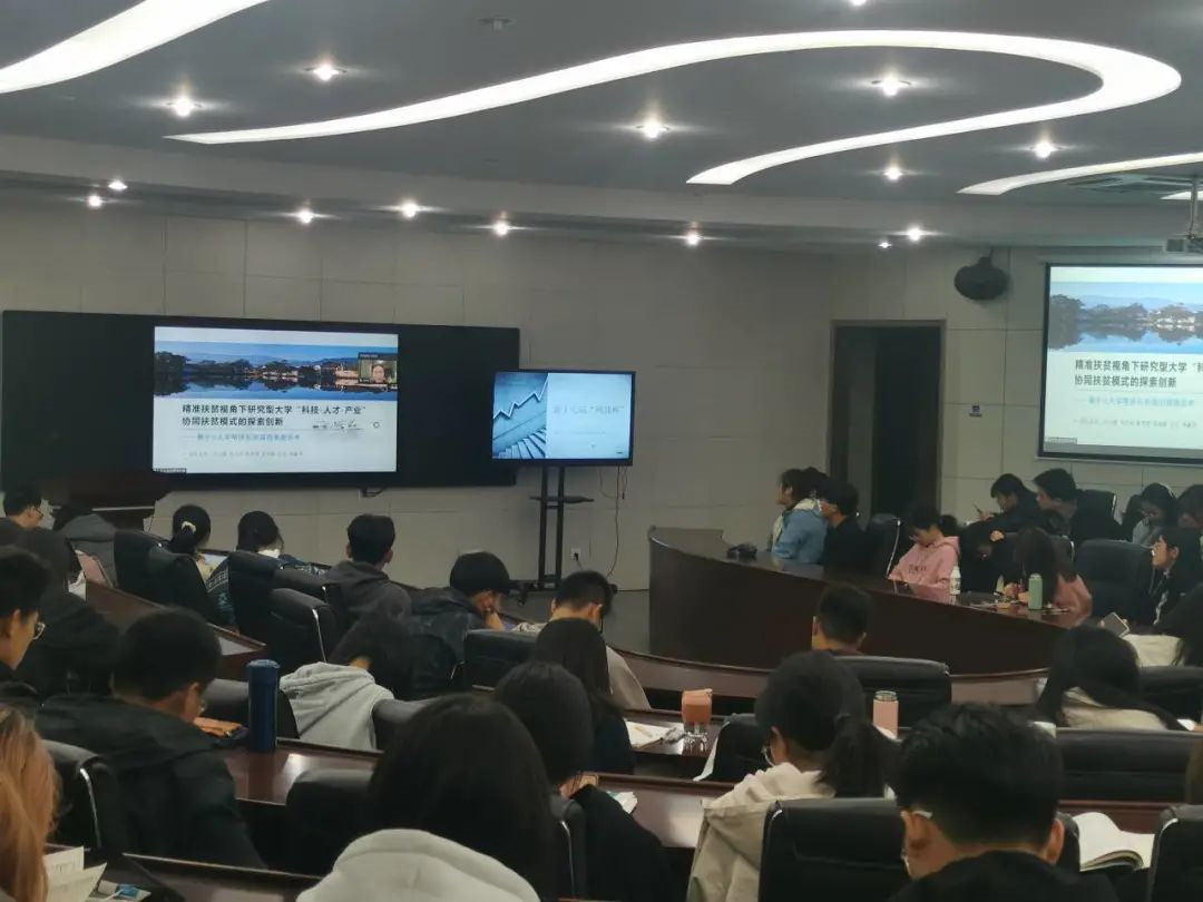 实践出真知,我们现场连线了亲身参与过优秀项目的司文进同学。司文进同学以石泉县脱贫项目为例,借用省赛答辩PPT展示了三大重点:如何剖析石泉县脱贫需求,如何结合现有的帮扶进行实践分析,以及如何进行成果展示的筹备工作。从参赛学生的视角讲解了与项目孵化有关的细节问题,并且着重强调了团队分工的重要性,他说“团队一条心,劲儿往一处使”才能使比赛更加融洽地进行下去。这些过去参赛积攒的宝贵经验对同学们而言具有很高的借鉴价值。