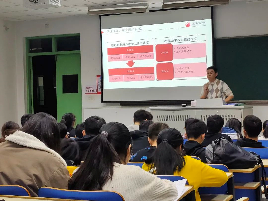 在对投资的现象、影响进行介绍后,陈老师随后对“投资应该投什么”这个大家最为关心的话题进行了解答。他将投资产品分为不保值品种、保值品种、增值品种三类,三种产品分别以黄金、债券、股票作为代表性产品。同时,陈老师结合了近年来美国市场上黄金、债券、股票的收益情况,不仅让同学们进一步开阔了视野,也使得同学们对投资工具有了更深刻的认识。