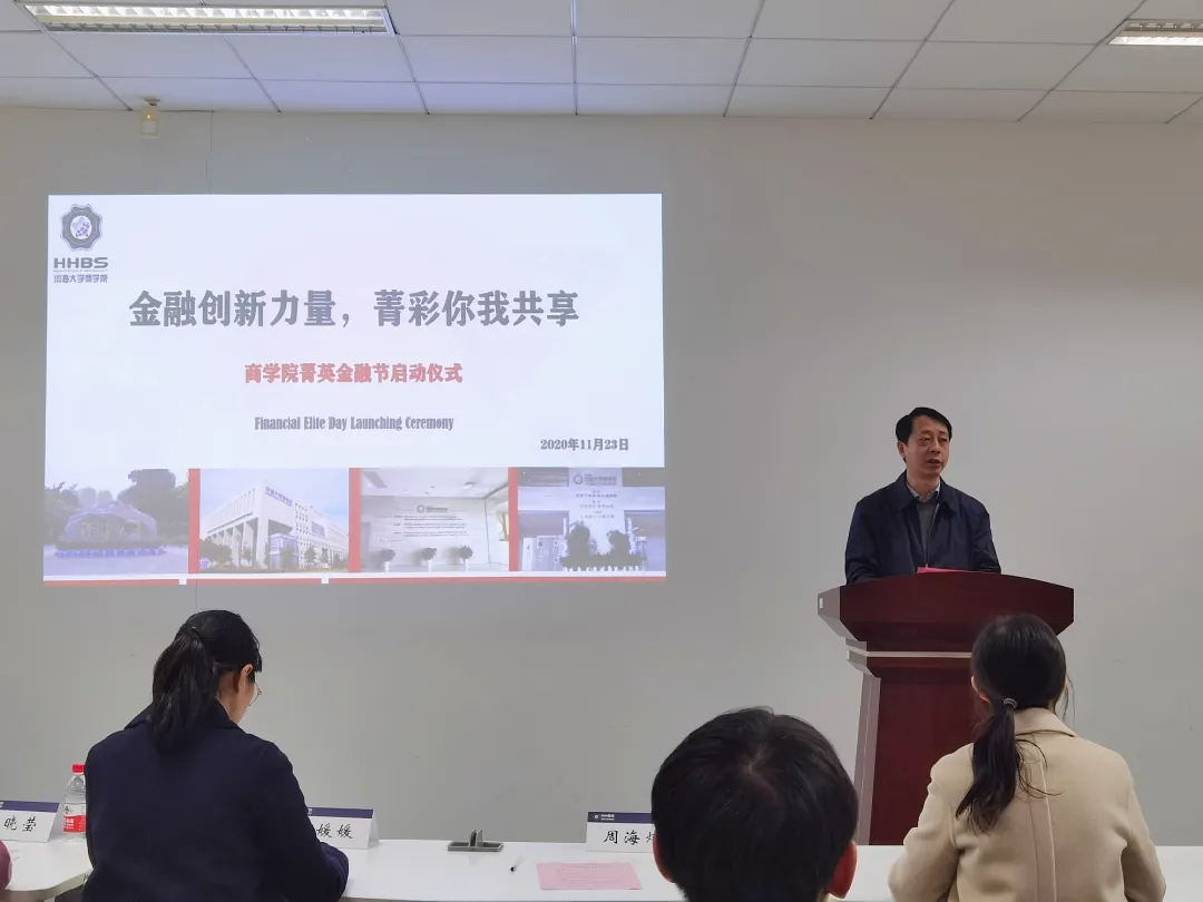 周院长的讲话让同学们深刻了解到创新的意义与重要性,迎着同学们的热情,孙一栩同学开始介绍本次菁英金融节的各项活动。