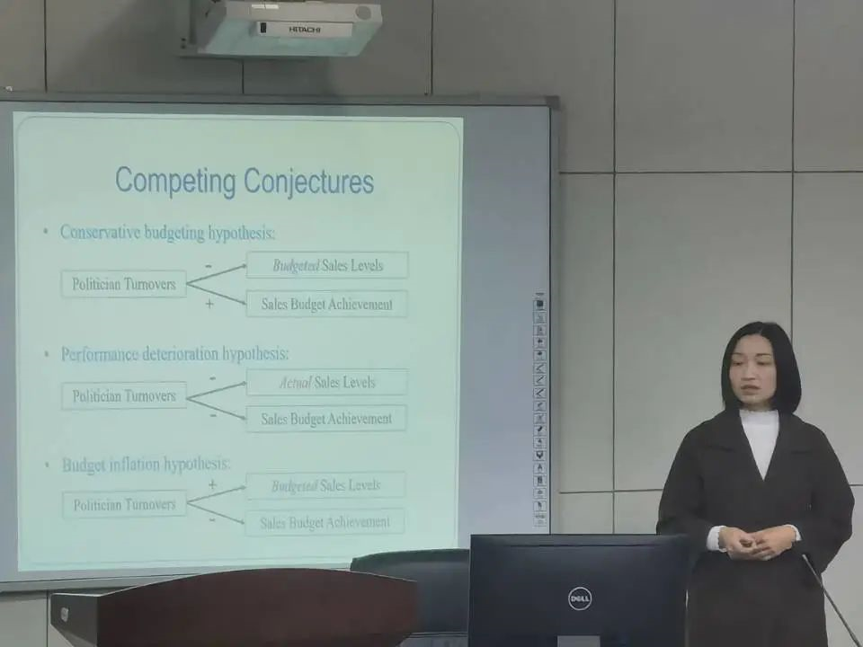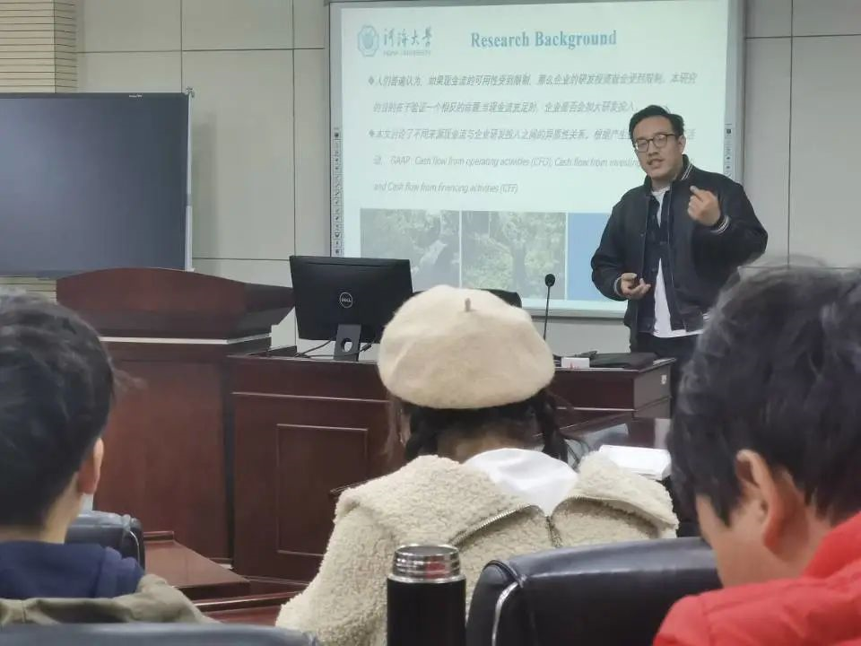 2020年12月10日,商苑讲坛第十一期在博学楼辅楼A412顺利开展。探花视频 有幸邀请到了卢浩老师和杨鑫老师,两位老师共同为学生们带来一场主题为“现金流可用性影响投资与有政治动机的公司预算”的讲座。讲座分为两部分,第一部分,现金流可用性影响投资,由卢浩老师讲述;第二部分,有政治动机的公司预算,由杨鑫老师讲述。