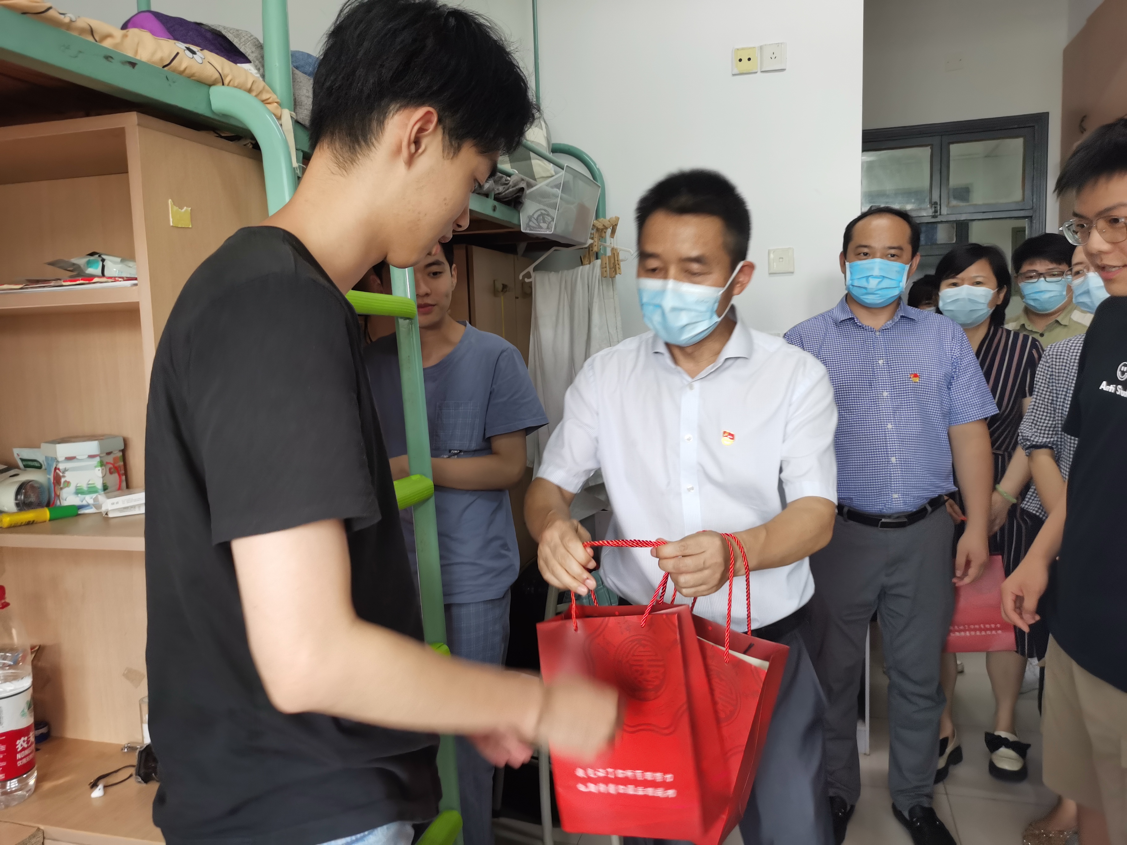 面对疫情防控的严峻形势,守护学院留校师生的安全,商学院根据学校的疫情防控工作要求,多次召开线上会议,部署落实学院疫情防控工作,每日领导班子群、疫情防控教师工作群、学生工作群通报防疫工作情况,全力守好“责任田”,护好商院人。结合学院暑期留校学生的实际情况,制定《商学院校内学生分类集中管理方案》,细抓举措、实化责任。学院领导深入学生宿舍,详细了解留校学生的生活情况,亲切询问学生的困难和需求,并为同学们送上了商学院校友和MBA在读学生募集的防疫物资,“商”下同心,集众之力,全面筑牢安全防线,确保学生安全稳定。