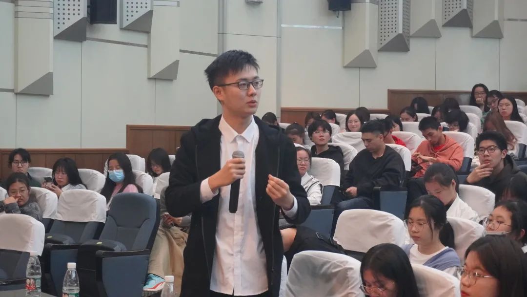 戴芷歆同学拥有丰富的科研竞赛经验与社会实践经验,结合个人经历,她畅谈了职业生涯规划和大学生应具备的软硬能力。接着,她展示了自己丰富的大学成长经历,同时也印证了她所说的,“不设限地成长是长期主义的价值投资。”最后,她从搜集信息、文书准备、联系导师、面试经验等方面分享了保研历程心得,让同学们对保研流程有了清晰而明确的认知。