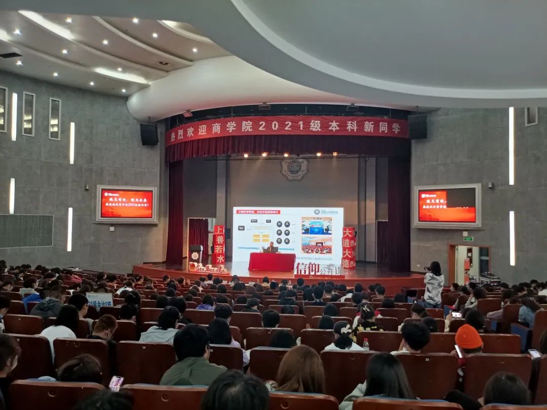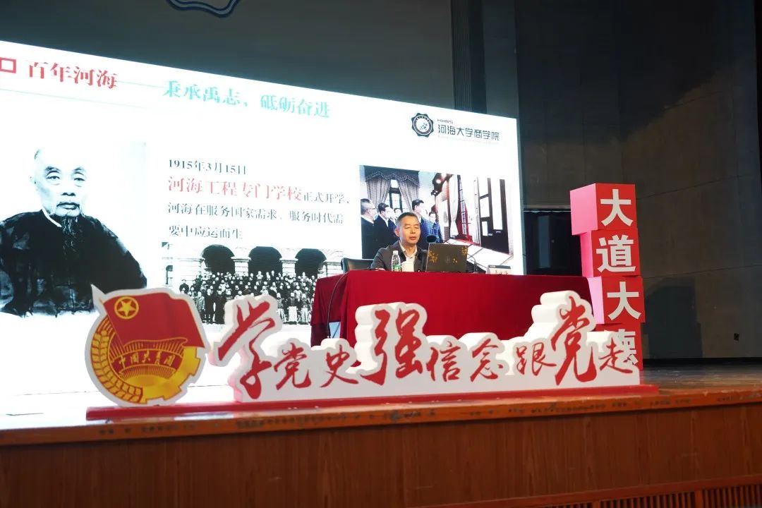吴宝海书记以“请党放心,强国有我,奏响新时代的青春之歌”为题,从“百年河海:秉承禹志,砥砺奋进”“河海商院:开拓进取,培英育才”“时代青年:矢志奋斗,强国有我”三个层面向同学们讲授理想信念课。从河海历史到学院历史,吴书记带领同学们感受师生校友不断秉承禹志的光辉历程,河海工程专门学校在近代著名爱国实业家、教育家张謇等人创办下正式开学,百余年历程,始终与祖国共命运,与时代同步伐。吴书记希望同学们传承精神,坚定信念,明确目标,矢志奋斗。