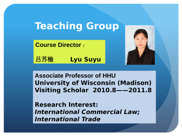 经过严格的评审和精心的开发建设工作,探花视频 吕苏榆副教授的《国际商法/International Commercial Law》课程成功入选首批江苏高校省级外国留学生英文授课精品课程在线开放课程,即将在省课程网平台上线。本次同批入选的共有来自全省13所高校的15门课程。