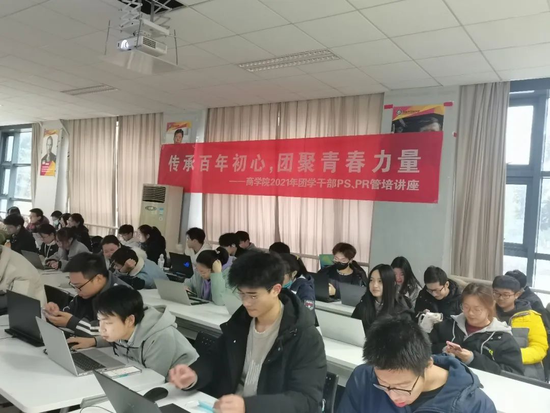 为提高团学组织成员的电脑基础技能水平以及办公软件使用水平,商学院团委组织部、团委宣传部、学生会综合服务部与学生科协外宣部联合举办了PS与PR技能专题培训活动。12月24日,“传承百年初心,团聚青春力量”商学院2021年团学干部PS、PR管培讲座在博学楼A103成功举办,本次讲座邀请到具有PS、PR丰富实操经验的朱威昱同学担任主讲人。
