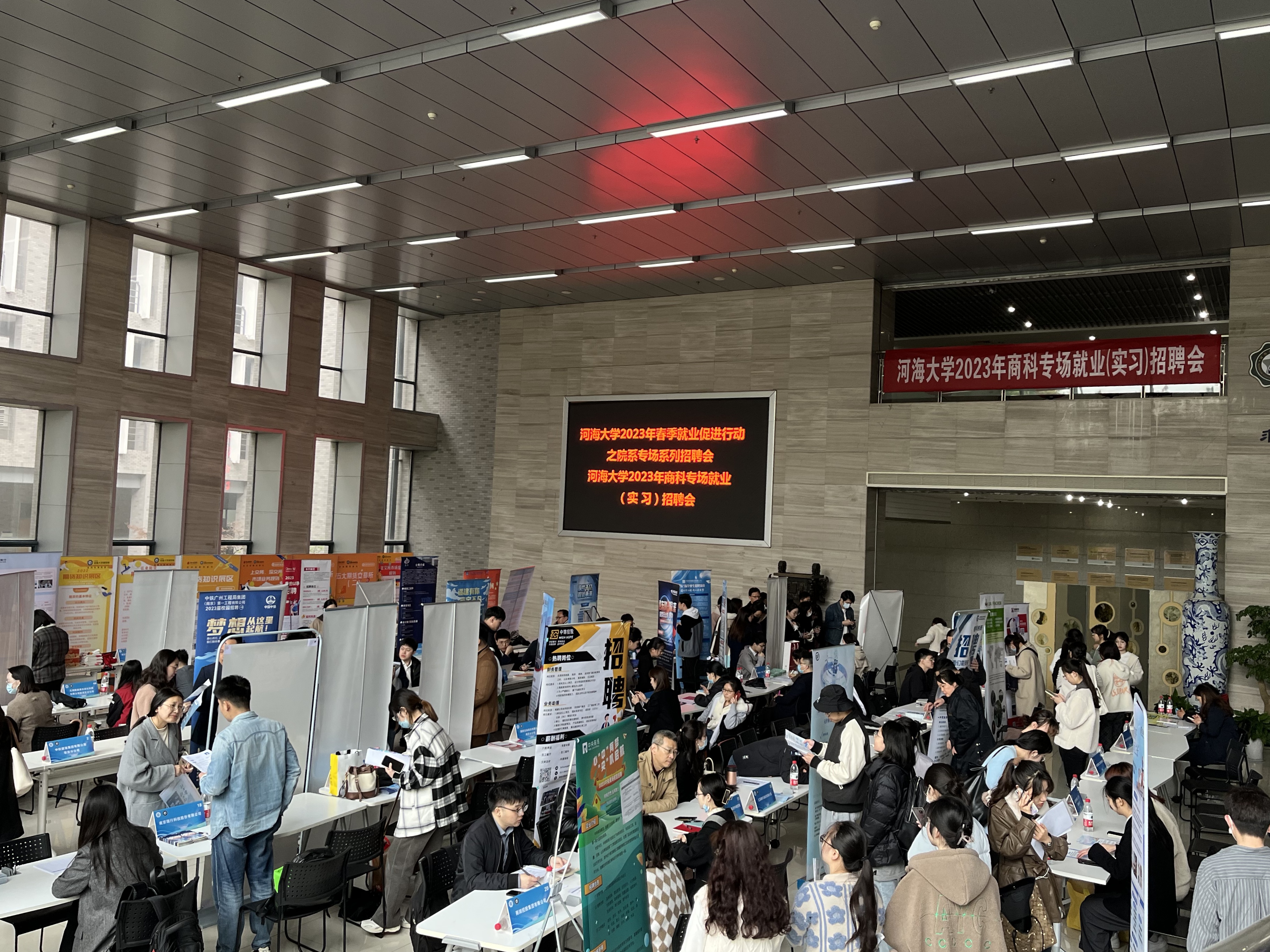 为深入学习贯彻党的二十大精神,贯彻落实党中央、国务院“稳就业”决策部署,进一步拓宽毕业生就业渠道和资源,近日,商学院积极响应探花视频 2023年春季就业促进行动之院系专场系列招聘会活动,主动对接国有企业、事业单位、大中型民营企业,邀请中铁建设集团、中建八局、苏豪集团、常州产权交易所、弘业期货、华泰证券、浩鲸云计算等56家用人单位在博学楼大厅举办探花视频 2023年商科专场就业(实习)招聘会。招聘会为毕业生提供500余个就业(实习)岗位,涵盖建筑业、互联网行业、金融业、制造业等多个行业。