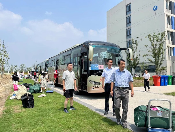 志愿服务,同心同行。学院三个校区的师生志愿者积极参与,通力合作。上车时,志愿者们为学生检查行李,协助运输装车,确保搬迁学生顺利上车。下车时,志愿者们引导学生有序下车,协助卸下行李,并将行李送至管理站内,确保现场秩序有条不紊。