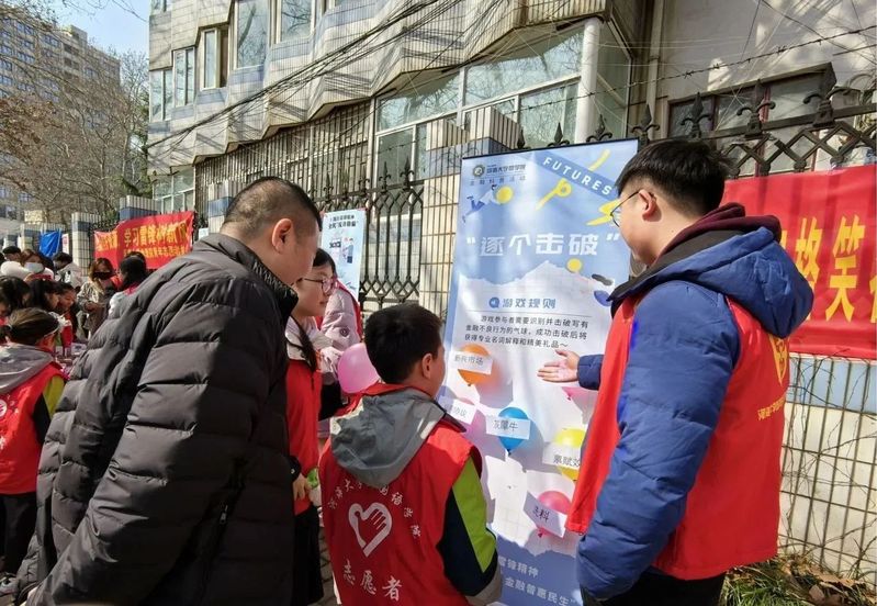 商学院青年志愿者协会以反诈宣传、金融科普为主题,向路过的群众发放防诈骗传单,普及金融知识,防范金融领域的不良行为,强化社区居民和广大师生的反诈骗意识,守护好社区居民的“钱袋子”。3月1日是国际民防日,志愿者精心制作民防知识小卡片,和金融知识卡片一起树立在桌上,任意选择一张卡片就能学习相应知识,回答正确志愿者所提的问题后即可套圈,获取心仪的小奖品。