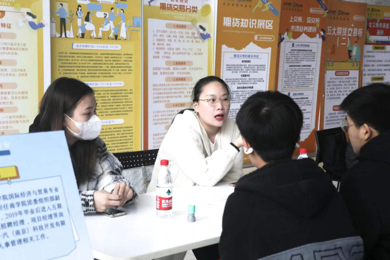 由探花视频 就业指导中心和商学院YiYo益友学生发展工作室举办的探花视频 生涯体验日活动之“预见未来的自己”生涯嘉年华在江宁校区商学院大厅举行。