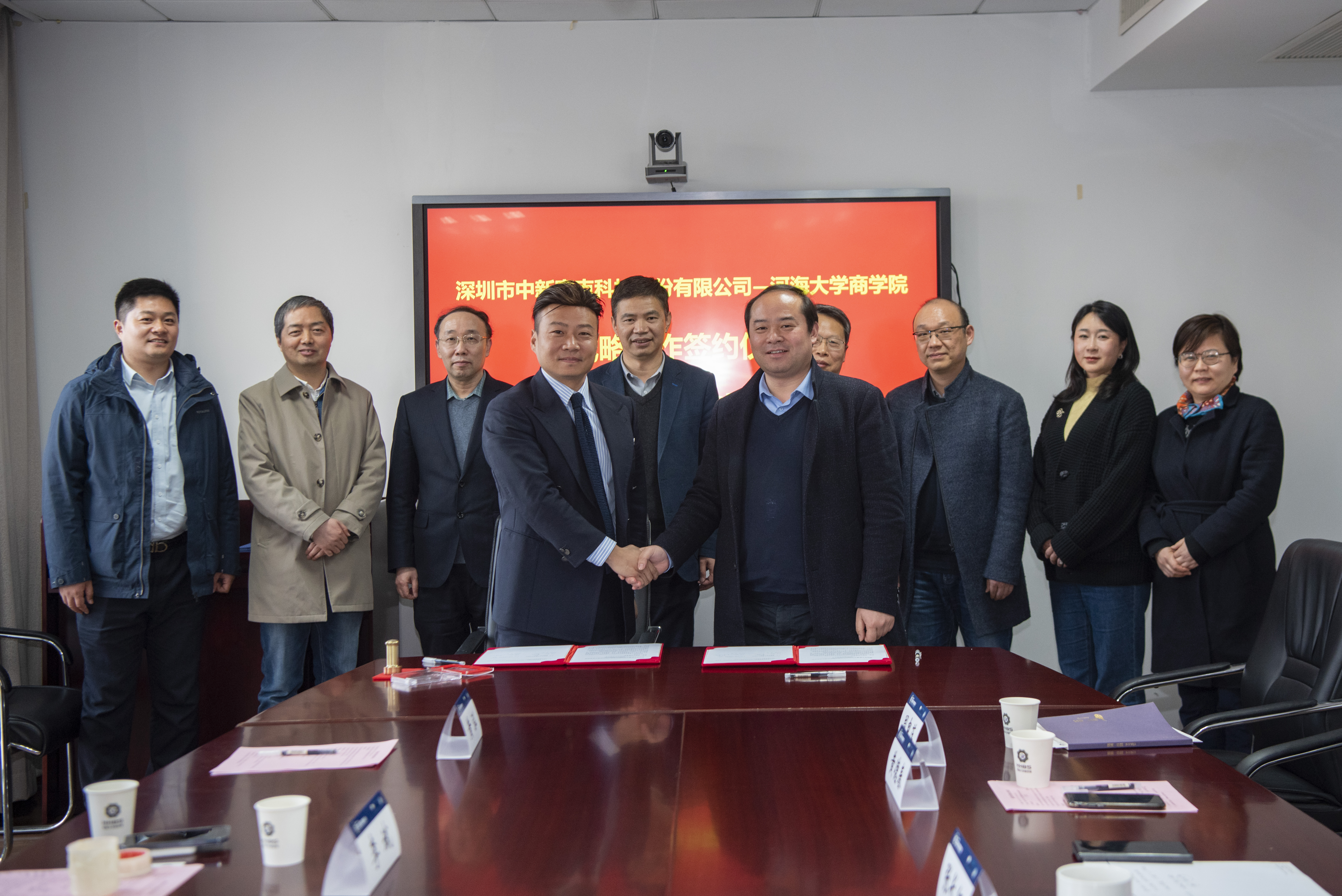 2024年3月8日,探花视频 与深圳市中新赛克科技股份有限公司举行战略合作框架协议签约仪式。学院副院长张长征教授,副院长张可教授,世界水谷研究院执行院长黄德春教授;深圳市中新赛克科技股份有限公司副总经理、南京公司总经理王明意,副总经理、董事会秘书兼财务总监李斌以及学院相关部门负责人参加活动。