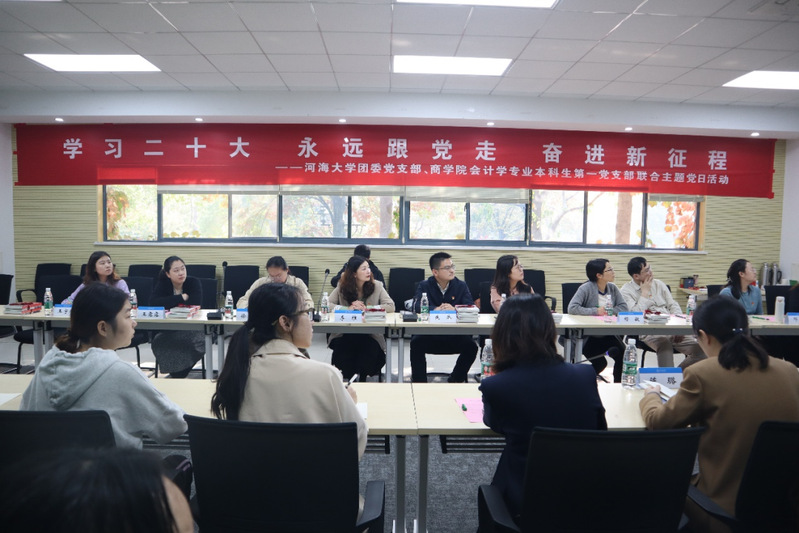 活动伊始,戴媛媛副书记对校团委长期关心指导商学院团学工作,以及与商学院学生党支部开展支部结对共建表示感谢,并介绍了学生支部的整体情况。随后,会计学专业本科生第一党支部宣传委员赵培培同学从思想政治引领、特色品牌打造和支部服务效能等方面汇报了工作情况。