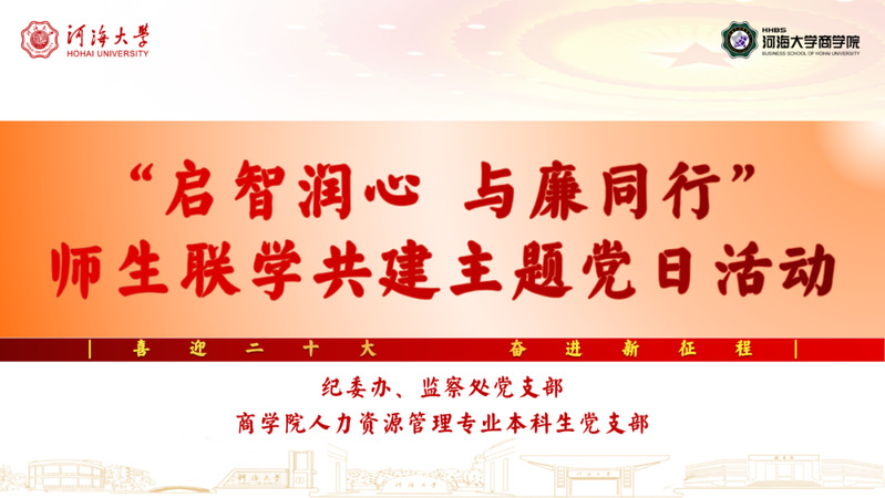 9月21日,纪委办、监察处党支部与人力资源管理专业本科生党支部围绕“启智润心,与廉同行”主题开展了师生联学共建活动。本次活动由纪委办、监察处党支部尹虔颀书记主持,商学院党委副书记戴媛媛、纪委办、监察处党支部和人力资源管理专业本科生党支部党员参加。