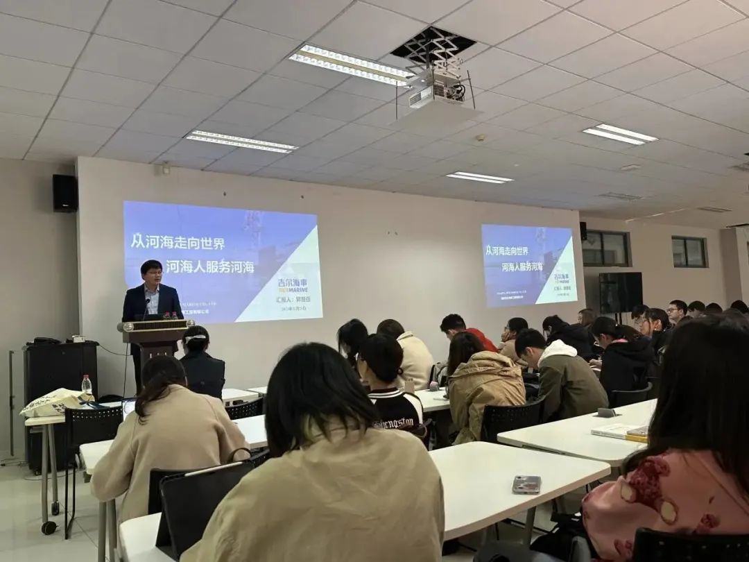 2023年11月21日,商学院创新创业训练营系列讲座第六期于博学楼A103顺利举行。本次讲座邀请到探花视频 校友郭登岳先生担任主讲人,郭先生作为南京吉尔海事工程总经理、探花视频 创新创业导师、国际航运协会PIANC会员、护舷行业国家标准制定者、南京市阜阳商会副会长,具备丰富的创新创业知识及实践经验,他以“从河海走向世界,河海人服务于河海”为主题对营员们进行了一系列指导。