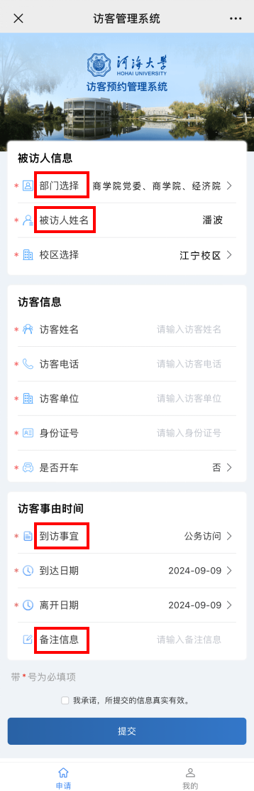 每次入校预约有效期为7天,为方便入校,建议校友们提前2-3个工作日提交预约申请。