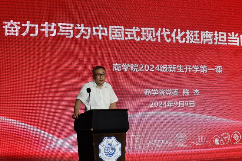 9月9日下午,学院在江宁校区博学楼报告厅隆重举行商学院2024级本科生开学典礼。学院领导、系主任、2024级本科生班导师、学院行政部门相关老师、本科生辅导员出席典礼,全体2024级本科新生参加典礼。党委副书记杨天主持典礼。
