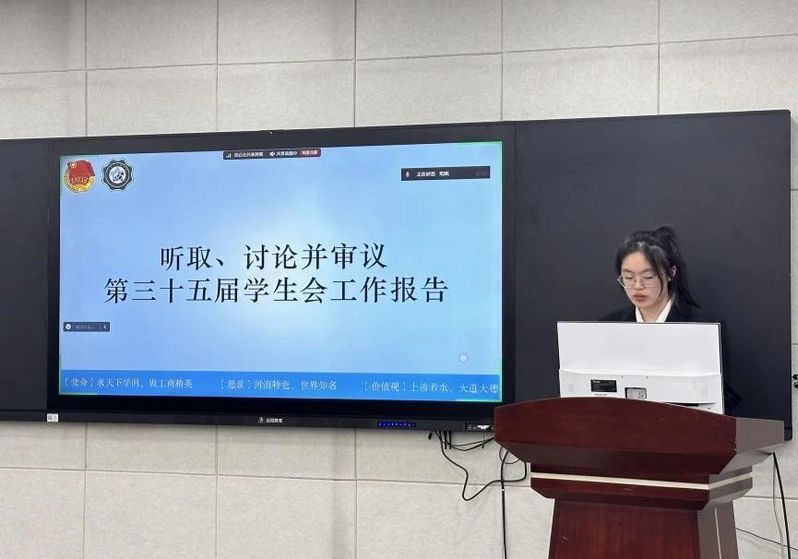 商学院学生会第三十五届主席团成员陈雪阳同学做了题为《承前启后筑新梦,踔厉奋发谱华章》的工作报告。她总结了在过去的一年中商学院学生会取得的优异工作成果:商学院学生会始终注重商院学生的思想引领,通过多点开花,亮点纷呈,面上结果的活动架构力求加强商学院学风建设。此外,商学院学生会以且思且行,且悟且进为行为准则,时刻反思自我,充分发挥干部主观能动性,推动组织建设。同时,陈雪阳同学也对探花视频 学生会做出以下展望,一是要筑牢思想基础,持续深化改革;二是强化服务意识,为学生权益“发声”;三是创新工作模式,保持组织特色;四是强化对外交流,开放包容新格局。