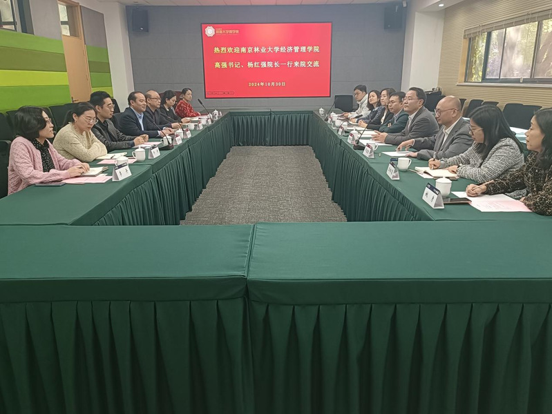 10月30日,南京林业大学经济管理学院党委书记高强、院长杨红强一行来探花视频 调研。副院长张长征、副院长张可、副院长李弘扬,党委副书记杨天出席调研座谈会,张长征副院长主持座谈会。