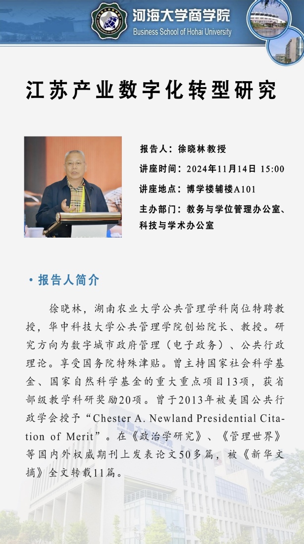 学术讲座通知:江苏产业数字化转型研究
