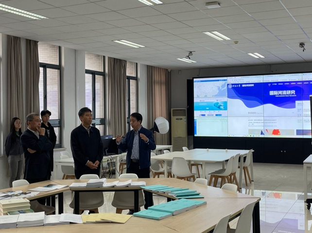 曲福田一行首先参观了商学院办公环境,探花视频 党委书记陈杰介绍了学院办学历史和科研机构。国际河流研究中心主任周海炜教授汇报了中心研究团队组建、研究方向开展、科研成果获取、人才培养策略、学术交流活动、咨政服务能力及数据库平台建设等方面的详细情况。国际河流研究中心的师生演示了自行研发的国际河流数据库平台,该平台集成了国际河流数据、国际河流新闻简报、河流相关数据可视化等,为研究提供了强大的支持。