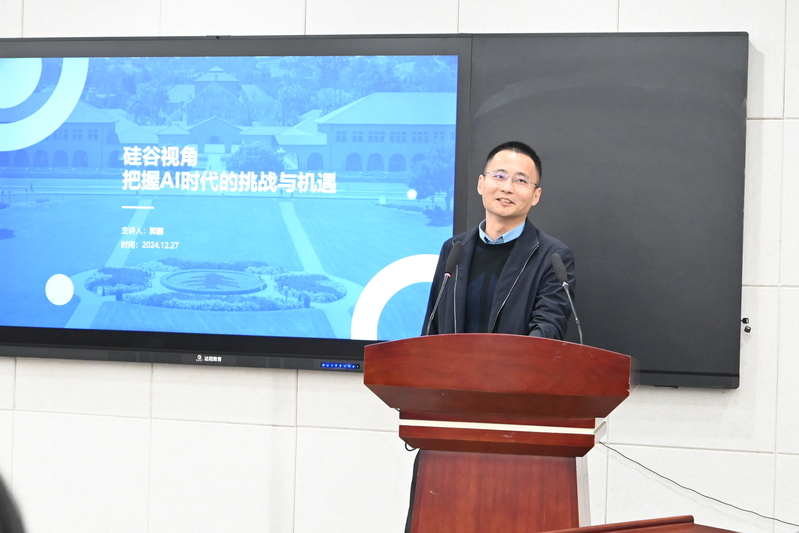 在讲座中,郭鹏先生着重分享了AI时代的企业创新与挑战。他指出,随着科技的飞速发展,AI已经成为推动企业创新的重要力量。他分享了自己在硅谷的研学经历,深入探讨了硅谷之所以成为全球创新中心的原因,并强调了人才、投资环境、产学研结合等因素在创新中的重要性。同时,他也提到了中国在AI领域的发展情况,鼓励在校学子要紧跟时代步伐,积极、科学地看待AI技术,为未来的职业发展打下坚实的基础。