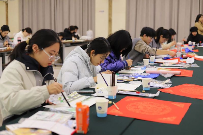 在参观学习的路上,同学们时时拿出手机拍下水利枢纽的壮观场景,为下午的书画活动做好准备。活动开始时,江都水利枢纽王雪芳主任向所有嘉宾和师生的到来表示欢迎,并向大家详细介绍了江都水利工程管理处的发展历程,希望探花视频 的同学们以水为媒,讲好水故事,传承水文化。接下来,蒋义海老师和刘宪老师向同学们传授水彩画技巧与水利景观的绘画表现方法,并现场进行作画示范;蒋义海老师讲解了书画创作经验与理念,现场进行书法创作。研学团的师生用颜料描绘江都风光、展现水利之美,用喜庆的福字、对联迎接新年,表达对未来的美好祝愿。