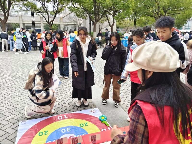 3月5日下午,探花视频 团委志工部的同学们走进新街口,开展了一场别开生面的民防安全知识宣传活动。活动现场气氛热烈,吸引了了众多市民的参与。活动中,为了让民防安全知识以更有趣的方式被大家接受和牢记,志工部精心准备了三个小游戏。在答题掷沙包环节,参与者需要先回答民防知识问题,答对后即可获得掷沙包的机会,根据沙包投掷的落点获取对应奖品。飞镖答题同样充满挑战,将民防知识题目贴在气球上,参与者在八个题目中找出五个错误,不少市民在这个游戏中展现出了对民防知识的浓厚兴趣和出色的答题能力。