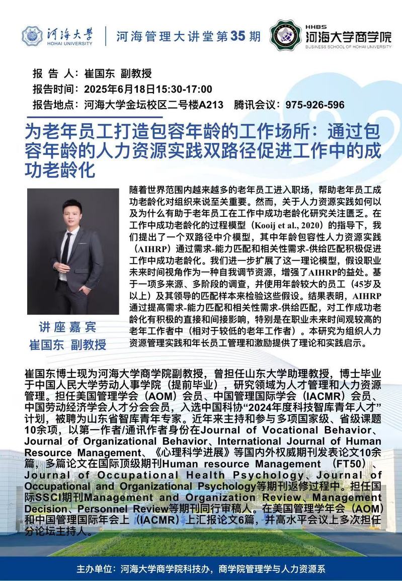 为老年员工打造包容年龄的工作场所:通过包容年龄的人力资源实践双路径促进工作中的成功老龄化