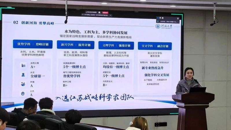 接着,魏俊美老师围绕学校的办学历史、学科特色、人才培养、师资力量、就业前景以及校园文化等方面,为同学们全面梳理了宣讲内容并鼓励同学们在宣讲中讲好河海故事、传递河海精神,增强宣讲的说服力与感染力,为活动开展奠定坚实基础。