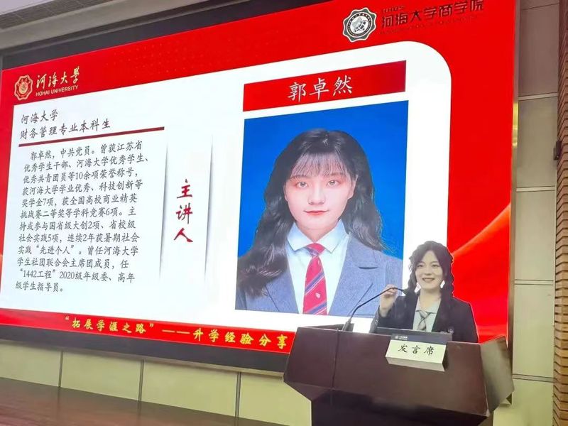 This experience sharing activity cultivated the students' sense of purpose, expanded a variety of information for further education, and demonstrated the excellent academic style of the young people of Hehai Business Institute. I believe that after listening to the experience sharing of the guests, the students can continue to broaden their new ideas for future development and embark on a wonderful career path with practical actions.